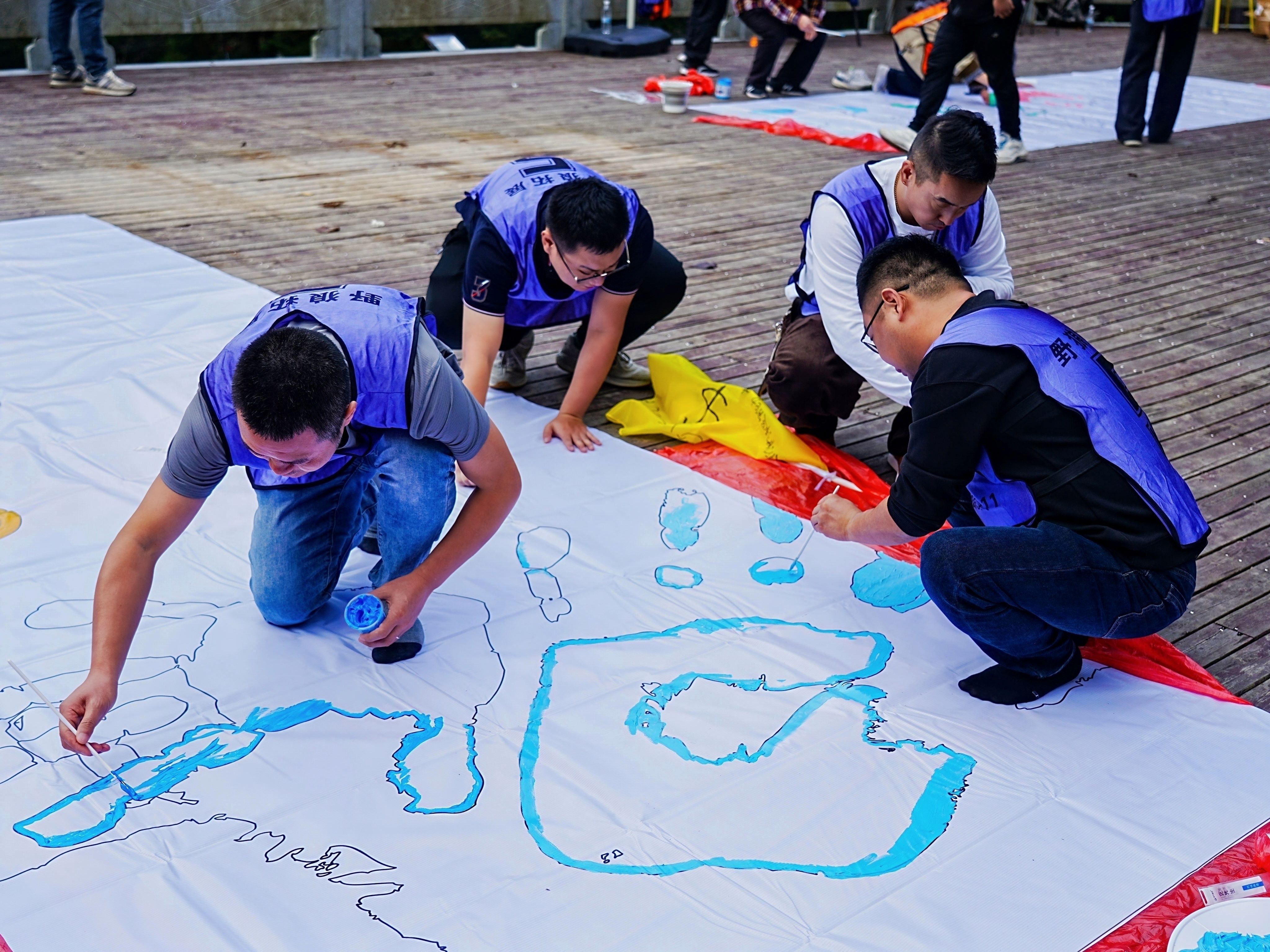 团建的第一个集体活动,是共同完成一幅写有 “ANDRITZ FAMILY · CREATING GROWTH THAT MATTERS” 的巨幅纳斯卡画。活动以十个小组协作的形式进行,每组负责一块画布。有人调色、有人上色、有人协调衔接。虽然看似轻松,实则考验协作与沟通。部分小组任务繁重、工具紧缺,为赶进度甚至直接徒手上色,将颜料抹在掌心,用双手去完成大面积涂色。正是这种通力合作、齐心协力的精神,让十块画布最终完美拼合成一幅完整的巨画。无人机镜头定格下的,是所有人努力后的成就与喜悦。那一刻,属于团队的色彩在庐山的云雾间熠熠生辉。